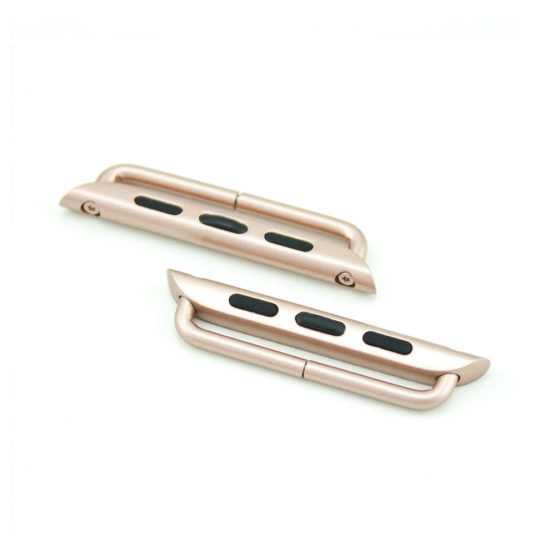 | Apple Watch lugs | Aluminum gold Series 3/4/5/SE/6, Black sport (Space Gray), Gold sport Series 1 and 2, Gold stainless steel Series 4 & 5, Rose gold Series 1 and 2, Silver sport matt, Stainless steel black, Stainless steel silver |